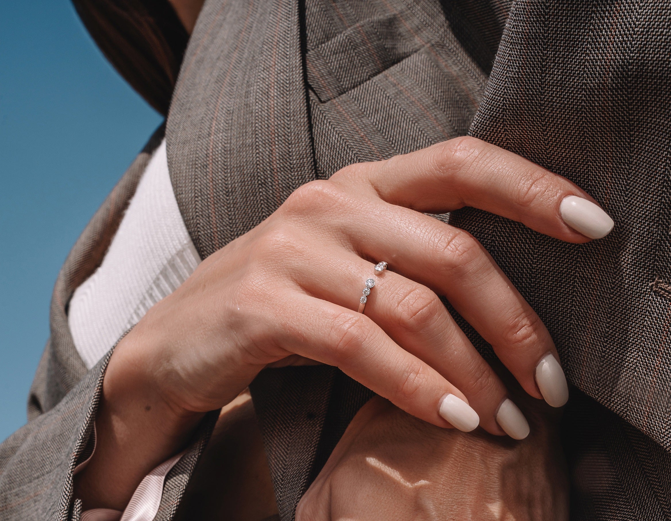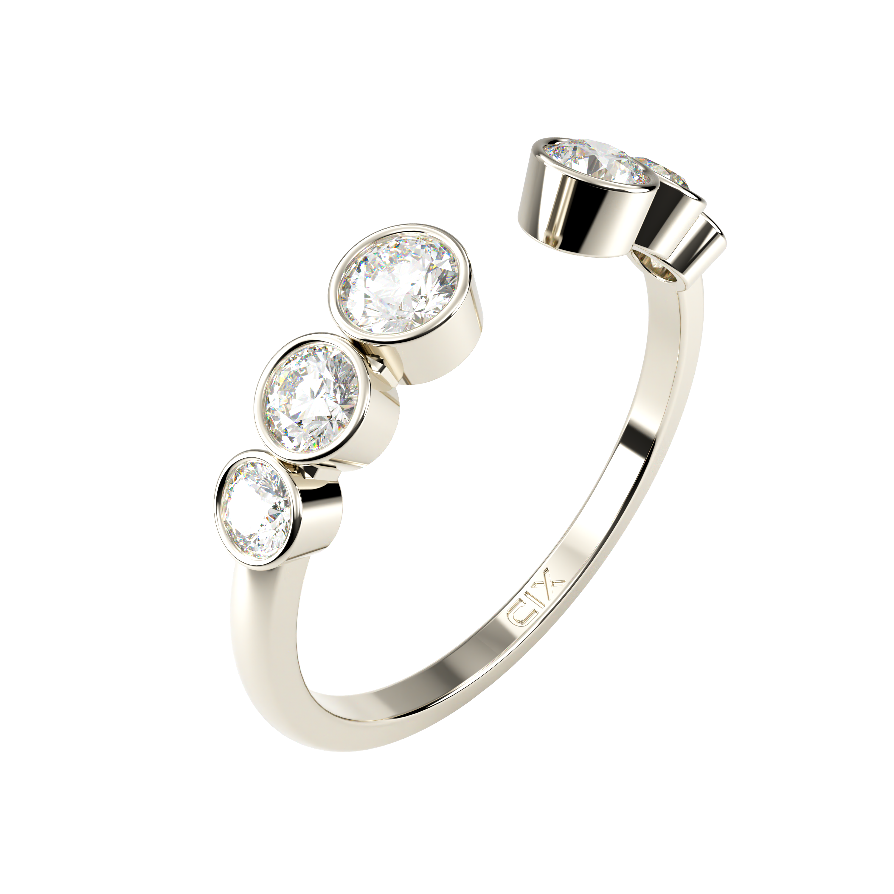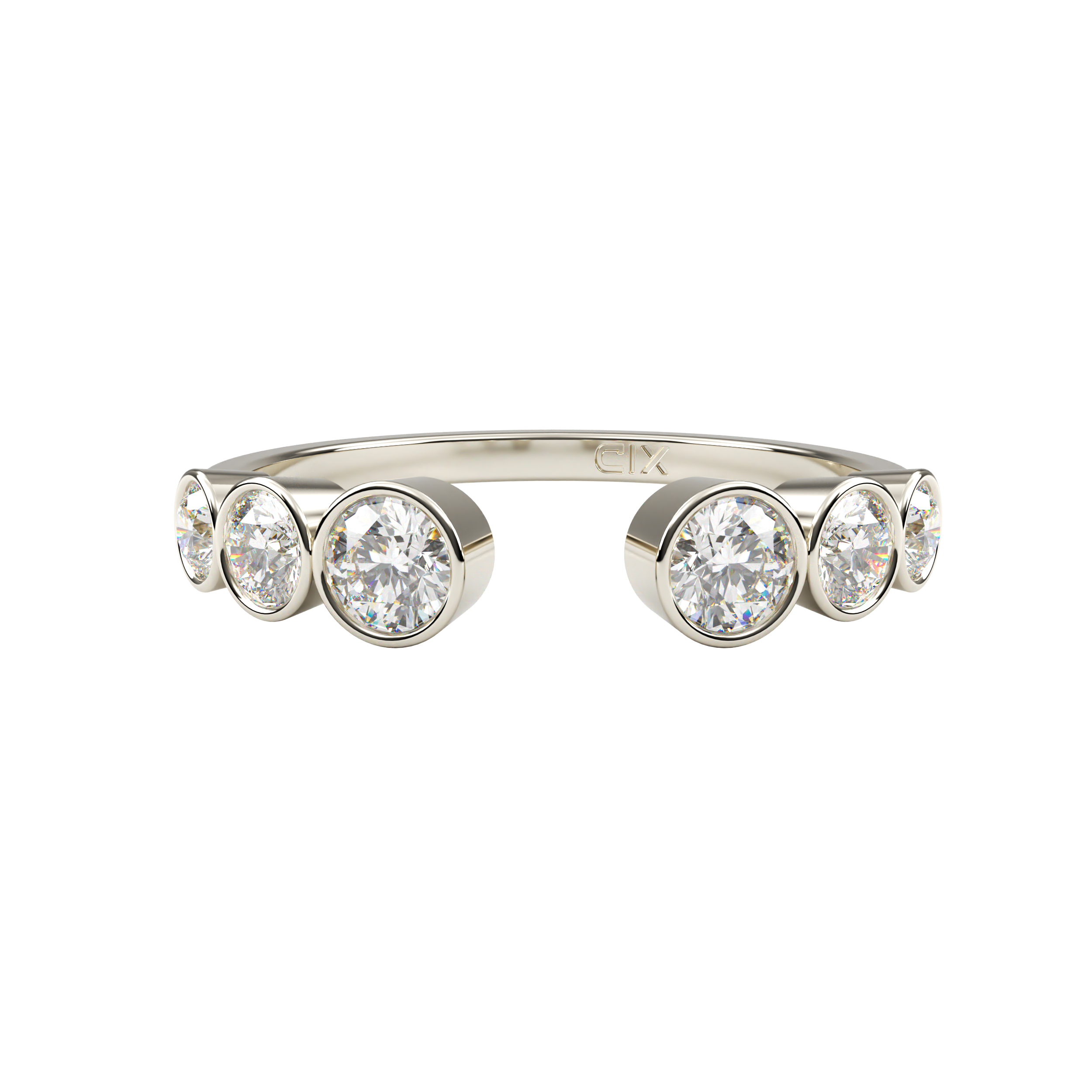 Bimini, an open ring featuring dazzling round cut diamonds accentuates this ring’s bold and timeless form.